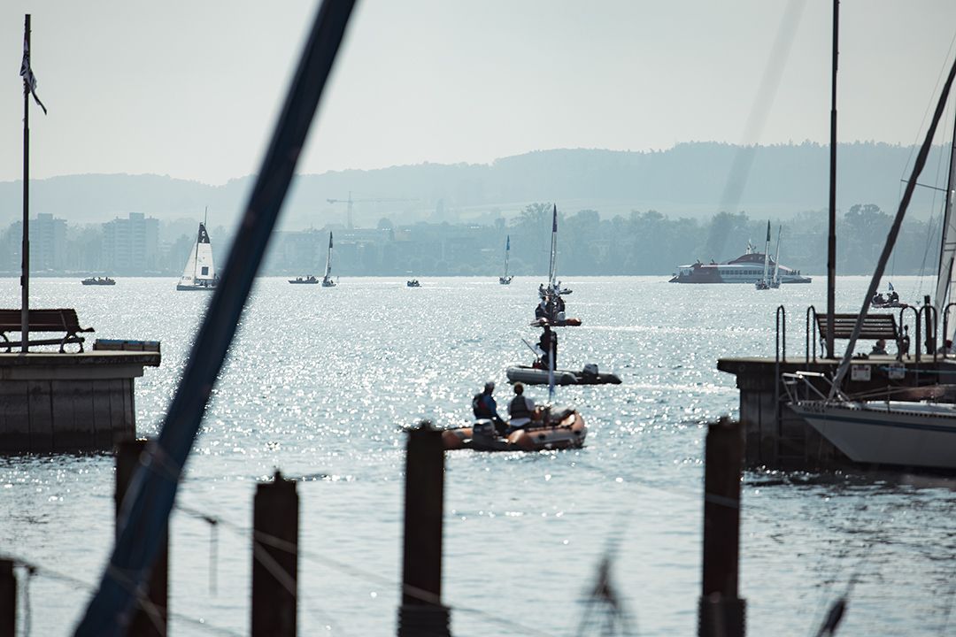 Am zweiten Tag war es komplett flau, so dass sich die Liga-Seglerinnen und Segler die Zeit mit Wakeboard-Fahren vertrieben, zudem bot das großzügige Gelände des Konstanzer Yacht-Club Gelegenheit zum Relaxen. „Das Rahmenprogramm, dass der Konstanzer Yacht-Club auf die Beine gestellt hat, war eine perfekte Entschädigung für die Flaute“, sagt Oliver Schwall. „Alle hatten ein super Wochenende, wären aber gerne mehr gesegelt.“