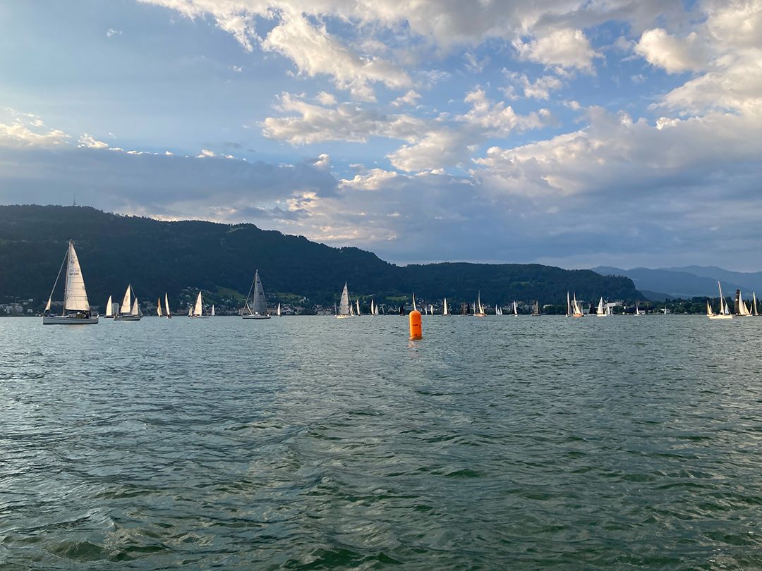 Der Katamaran „Paulchen“, gesteuert von Dominik Stahl (WYC), war das schnellste Boot im Ziel und passierte die Ziellinie um 12:48 Uhr. Zweites Schiff im Ziel war die „Wild Lady“ um ca. 12.55 Uhr – beide über die Schweizer Seite kommend, danach gab es erstmal wieder eine lange Pause.